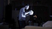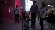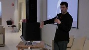 Robert Lechowicz z Lab^180 prezentuje zasadę funkcjonowania interfejsu multi-touch stołu dotykowego.