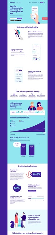 Działania proaktywne, szczególnie dotyczące pieniędzy to wyzwanie samo w sobie, szczególnie jeśli chodzi o czas odległy jak emerytura. Życzeniem klienta było stworzenie jak najbardziej przejrzystego serwisu oraz aplikacji, tak aby wszystko było "czarno na białym" bo w kwestii Twojej przyszłości - wszystko powinno być jasne jak słońce. Kampania posiada również cele społeczności, gdzie im więcej ludzi zadba o swoją przyszłość z frankly, tym mniejsza będzie opłata dla wszystkich. Kampania rozbita jest również na kilka etapów a w każdym są różne kanały dotarcia do klientów - wymagało to również przygotowania szablonów stron które posiadają wspólne elementy, dzięki czemu zmiany będą wprowadzane raz - zamiast kilkunastu.