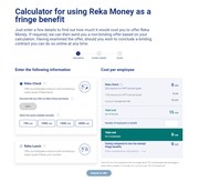Strona dysponuje formularzem kalkulatora przeznaczonym dla właścicieli firm. Kalkulaor pozwala szybko zorientować się w szczegółowych kosztach wprowadzenia do swojej oferty benefitów dla pracowników bonów: Reka-Checks i Reka-Lunch. Ponadto w ten sposób klient może szybko przejść od wyników kalkulacji do propozycji oferty dla jego firmy.